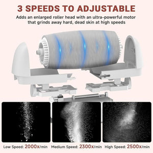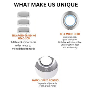 - 3 Interchangeable Roller Heads - Different textures for various callus removal needs and skin sensitivity levels