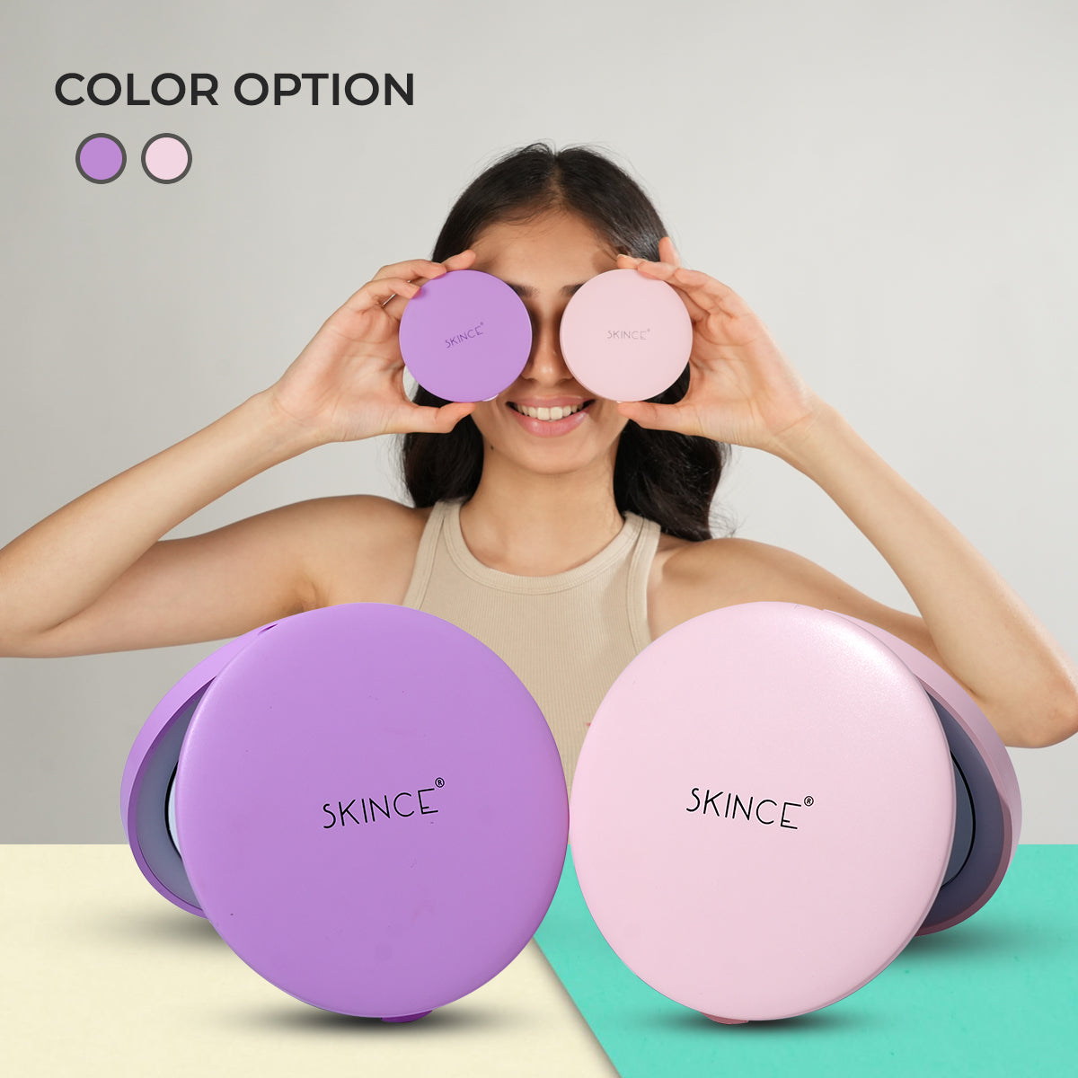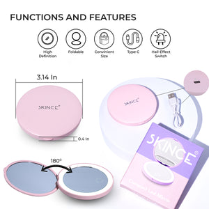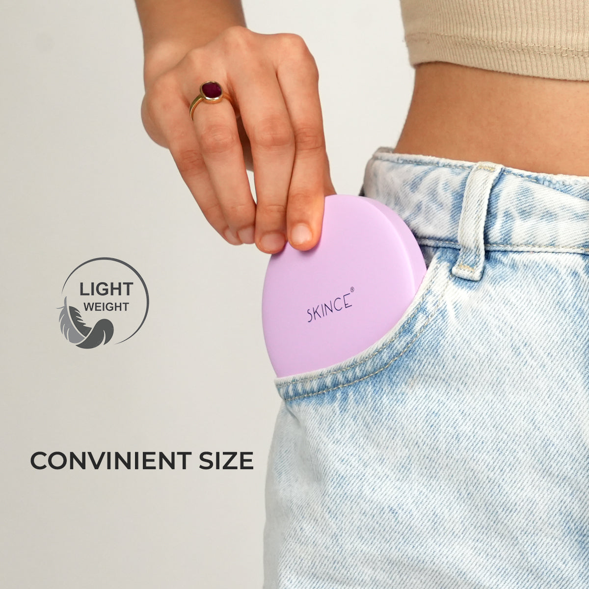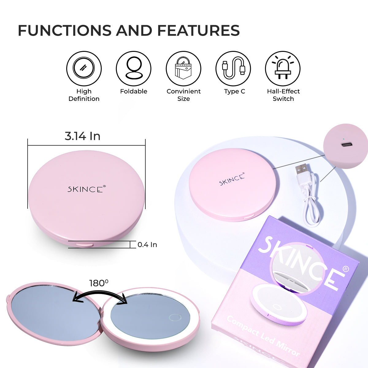 Introducing the Skince Compact LED Mirror, the perfect beauty companion for every woman. Imagine yourself on your way to a date, in a dimly lit car, or on a crowded city street, taking one last look! Our Compact LED Mirror daylight-like ring light offers the perfect lighting for those on-the-go touch-ups 👄. With 3 different light color and intensity settings, you can keep your makeup and hair looking great anytime, anywhere. 💃🏻