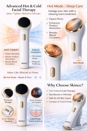 The Skince® Facial Wand combines heat + cooling + vibration technology to give you:
